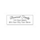 Einfaches textbasiertes Design mit Familiennamen stehend ein wenig aus mit zartem Schriftart und leicht gekrümmter Darstellung. Es folgen zwei Textzeilen für die Adresse, mit einfachem Schriftart zum Lesen. Text, Schriftart, Größe und Positionen lassen sich einfach anpassen. Kann in Holz-Briefmarke übertragen werden, um mit separater Tinte zu verwenden.