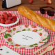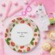 Benutzerdefinierter Text Erdbeermuster rosa Hinter Pappteller