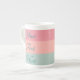 Elegantes handgeschriebenes Skript benutzerdefinierte Textvorlage Trendy Pink Peach Aquamarine Farben Knochen China Cup.