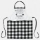Machen Sie sich diese wunderschöne schwarz-weiße, karierte Schürze mit der Möglichkeit, alle vier Textbereiche mit Ihrer eigenen Nachricht anzupassen! Design mit schönem Bereich für Ihren Text, mit Spatel, Mischung von Schalen, Gabel und Whisk Details. Einzigartige Geschenkidee!