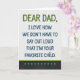 Angewohnt "Lieber Vater, ich Liebe, wie wir nicht laut sagen müssen, dass ich dein Lieblingskind bin." Grußkarte.