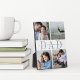 Schenken Sie Papa diesen Tag des Vaters ein Geschenk mit dieser vier Foto-Collage-Plakette. "VATER" erscheint in der Mitte in schick-grauem Schriftsatz, mit Ihrer benutzerdefinierten Nachricht und Kindernamen überlagert.