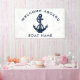 Das Bannerdesign des nautischen Ankerwillkommen ergänzt nicht nur die zeitlose Ästhetik, sondern ergänzt auch die Kollektion der Bootbegeisterten. Mit dem Namen des Bootes, einem marineblauen Anker und Seil, personalisieren Sie eine einzigartige Ausrüstung für Ihr Boot. Es ist ein großartiges Display für jeden Anlass auf dem Boot.