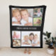 Erstellen Sie für dieses personalisierte Geschenk eine maßgeschneiderte 6 Foto Collage Keepake Decke. Fügen Sie Ihre Fotos von Familie, Freunden, Haustieren, Erinnerungen, Veranstaltungen, Fotografie, etc. in weißen Rahmen und ein oder zwei Textzeilen in der modernen weißen Typografie vor einem schwarzen Hintergrund.
