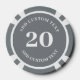 Personalisierte Poker-Spielchips mit eigenem Firmenlogo und eigenem Text. Dieses graue Design enthält die Zahl 20, kann aber mit beliebiger Menge bearbeitet werden.