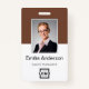 Personalisieren Sie diesen benutzerdefinierten braunen Mitarbeiternamen und das Foto-Abzeichen einfach mit Ihrem Firmenlogo und qr-Code oder Bar-Code. Erhältlich mit verschiedenen Hintergrundfarben und Anbaugeräten. Keine Mindestbestellmenge.
