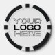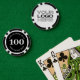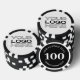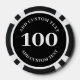 Personalisierte Poker-Spielchips mit eigenem Firmenlogo und eigenem Text. Dieses schwarze Design enthält die Nummer 100, kann aber mit beliebigem Wertebetrag bearbeitet werden.