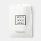 Erstellen Sie individuelle Papiertüten mit Ihrem Firmenlogo, Ihrer Tagelinie und Ihrer Website in einem schwarzen Serif-Schriftart auf weißem Hintergrund. Die Leckerei ist zu 100% lebenssicher. Ein einfaches, minimalistisches Design, das für jedes Unternehmen funktioniert. Das sind perfekte Branding für Bäckereien oder als berufliches Marketing und Werbegeschenk für Messen.