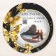 Custom Foto QR Code Schmetterling Save the Date Rundpapier Untersetzer Ein modernes Save the Date in einem einzigartigen Untersetzer-Format, das für Ihr Lieblings-Verlobung-Foto. Das Design besteht aus goldenen Schmetterlingen auf schwarzem Hintergrund rund um den Untersetzer. "Save the Date" erscheint oben auf dem Untersetzer in schwarzem Block und Schriftsatz mit Namen, Datum und QR-Code darunter. Personalisieren Sie mit Ihrem bevorzugten horizontalen Foto. Der QR-Code führt zu Ihrer Event-Webseite, wo alle Details gefunden werden können und wo Ihre Gäste sofort UAWG machen können und es Ihnen leicht machen zu verfolgen, wer kommt und wer nicht. Passen Sie Ihre Namen, Bilder und QR-Code an.