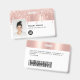 Dieses Custom Glam Employee Abzeichen ist einfach mit Foto, Scan Bar Code und Business Logo zu personalisieren, inklusive Metallklammer. Ein trendiges, mädchenhaftes Design, verlassen in niedlicher Rose Goldfolie und Glitzer-Tropfen, vollständig anpassbar in Vorder- und Rücken-Größen, Sans-Serif-Schriftart und ein berufliches und klares Aussehen. Verfügbar mit oder ohne Lanyard, Metallklammer oder mit Retraktierbar. Keine Mindestbestellung.
