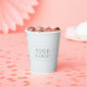 Dieser minimale Papierbecher verfügt über ein einfaches Logo und eine Textvorlage auf einem hellgrauen Hintergrund. Fügen Sie Ihr Logo hinzu und passen Sie den Text mit Ihren Informationen an. Sie können diesen personalisierten Becher an Ihrem Geschäftsplatz, in Geschäften, bei Firmenveranstaltungen, usw. nutzen.