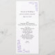 Lange und dünne Hochzeitstischkarte in Weiß mit geprägtem, hellen, lila Schnörkel mit Blumenmuster. Personalisieren Sie den gesamten Text, um Ihr Hochzeitsempfang-Menü Anzug. Die passenden Hochzeitsprodukte sind erhältlich.