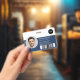 Eine berufliche und vollständig anpassbare Mitarbeiter-ID-Abzeichen-Vorlage. Laden Sie Ihr eigenes Foto, Ihren Namen, Ihre Jobbezeichnung und Ihre Mitarbeiternummer hoch. Das Design enthält einen realistischen Strichcode für die Authentizität mit bearbeitbaren Textfeldern für Firmendetails. Ideal für Unternehmen, Organisationen, Schulen und Veranstaltungen, die saubere und moderne Ausweise benötigen.