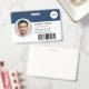 Eine berufliche und vollständig anpassbare Mitarbeiter-ID-Abzeichen-Vorlage. Laden Sie Ihr eigenes Foto, Ihren Namen, Ihre Jobbezeichnung und Ihre Mitarbeiternummer hoch. Das Design enthält einen realistischen Strichcode für die Authentizität mit bearbeitbaren Textfeldern für Firmendetails. Ideal für Unternehmen, Organisationen, Schulen und Veranstaltungen, die saubere und moderne Ausweise benötigen.