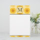 Ein Muster gelber Sonnenblumen mit einem Monogramm-Design. Der Anfangsbuchstabe von Monogramm ist auf einem hellgelben und schwarzen Kreis. Der Anfangsbuchstabe kann geändert werden, um diesen Punkt zu personalisieren. Ein schönes Blumendesign.