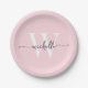 Girly Modern Simple Elegant Blush Pink Monogram Initial Name Signature Script Custom Personalisiert Paper Teller. Dieses Design mit Ihrem Vornamen in einem hübschen handgeschriebenen Stil Swash Schwanz Schriftart Typografie (oder Kalligrafie) mit Monogramm initial in Schwarz-Weiß auf rot Rosa. Diese sind einfach zu anpassen. Ideal für die Hauswärmung, auch für Geburtstag, Hochzeit, 16 Geburtstagsparty, Junggeselinnen-Abschied, Brautparty, für die Abschlussfeier, Babydusche und Es ist für das Mädchen, das Lieben einzigartige minimalistische Dinge.