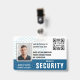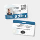 Anpassbares Abzeichen mit geometrischem Hintergrundmuster. Personalisieren Sie Ihre ID-Foto, Mitarbeiternummer, Jobtitel, Firmenname, Logo, Ausstellungsdatum, Ablaufdatum und QR-Code oder Strichcode. Ideal für verschiedene Arbeitsstätten und Berufe, wie zum Beispiel für einen privaten Sicherheitsbeamten, einen nahen Schutzbeamten, die Aufbewahrung von Sicherheitsvorräten, den persönlichen Leihwächter, den offiziellen Türsteher, den Fachhändler, den ärztlichen Personalausweis und vieles mehr. Druckfarben: Blau, Gold, Schwarz und Weiß. Bestellen Sie die Kollektion für weitere Abzeichen und Tags, die für die Sicherheitsdienstbranche entwickelt wurden.