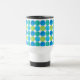 Eine schicke Tasse für Reisen oder Pendler, mit einem Rastermuster aus Blue Moons in Neon Green, Emerald, Türkis und Dazzling Blue auf einem weißen Hintergrund, den Sie ganz einfach ändern können - Schwarz oder Royal Blue sehen auch gut aus. Teil der Posh & Painterly 'Blue Moons' Kollektion.