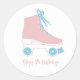 Benutzerdefiniertes Retro-Roller-Skate Rosa blaue Runder Aufkleber