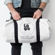 Benutzerdefiniertes schwarzes Firmenlogo auf weißer Duffeltasche - Laden Sie einfach Ihre schwarz oder dunkel gefärbte Firmenlogo-Grafik oder Ihr Image in diese Vorlage mit zwei Zeilen angepassten Text hoch.