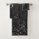 Dieses trendige, elegante Badetuch-Set mit hübschem schwarzglänzenden Glitzer auf schwarz gebürstetem metallischem Hintergrund ist einfach zu personalisieren.