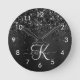 Dieses trendige und elegante Round-Clock-Design mit hübschem schwarzglänzenden Glitzer auf schwarz gebürstetem metallischem Hintergrund ist einfach zu personalisieren.