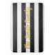 Diese schwarz-weiße Badematte hat waagerechte Streifen. Personalisieren Sie den Text auf Ihrer Badematte in Imitate Gold Skript.