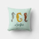 Niedliches, individuelles Kissen mit drei handbemalten Seepferden in Aquarellfarben. Fügen Sie einfach den Namen Ihres Babys hinzu! Der Stil des Schriftartes, die Größe des Schriftartes und die Farbe des Schriftartes können durch Klicken auf "Bearbeiten mit dem Entwurfstool" geändert werden.