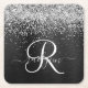 Dieses trendige, elegante, quadratische Untersetzer-Design mit hübschem silberfarbenem Glitzer auf schwarz gebürstetem metallischem Hintergrund ist einfach zu personalisieren.