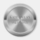 Maßgeschneidertes silbernes Abzeichen. Das Metall und die Gravur werden simuliert. Sie können den Namen und den Text des Datums ersetzen.