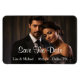 Benutzerdefiniert speichern Sie den Datums-Magneten, der mit einem Beispiel-Foto-Druck von einem Paar angezeigt wird. Passen Sie dieses Element an, und ändern Sie das Foto und das Datum des Beispiels auf Ihr eigenes. Image für lizenzierte Bilder all-free-download.com
