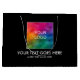 Individuell gestaltbare Texte und Designs laden Sie hier Ihr Firmenlogo oder Image-Foto hoch. Moderne, elegante Werbevorlage Schwarz & Weiß glänzende große Geschenktasche.