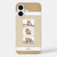 Custom Pet 3 Foto Collage und Name iPhone 16 Fall. Ein personalisiertes Foto-Telefongehäuse für einen Hundebesitzer. Modernes Design auf beigem Hintergrund mit vergoldetem Imitat-Glitzer. Personalisieren Sie die Telefonzelle mit 3 Ihrer Lieblings-Fotos und einem Namen in trendigem Skript. Ein personalisiertes Geschenk für Hundebesitzer und Tierliebhaber.
