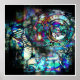 Genießen Sie dieses farbenfrohe abstrakte Design eines Benzin Motorrad-Motors.