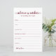 Diese einfachen, bordeauxroten und weißen, modernen, minimalistischen, handgeschriebenen Skriptblätter "Advice & Wishings" sind perfekt für Brautparty-, Probe- oder Hochzeitsgäste. Die Menschen werden die Liebe haben, die Anweisungen zu bekommen - sie machen es so einfach, liebende Ratschläge und gute Wünsche verlassen. Sie werden noch auf Jahre geschätzt.