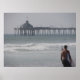 Ein Boogie-Boarder bereitet sich auf den Absturz am Imperial Beach vor. Der IB Pier schuf den Hintergrund. Im Jahr 2006 angenommen. Am Ende des Gebäude steht eine amerikanische Flagge.