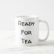 Bereit für Teevorlage Kaffee Tasse. Die Worte "Für Tee bereit" sind auf schwarzem Text auf der Vorder- und Rückseite dieser Kaffeezubereitung-Tasse geschrieben. Fügen Sie die Wörter für Ihr Lieblingsgetränk hinzu. Viel Spaß!