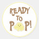 Dieses Aufkleber-Etikett zeigt ein niedliches Popcorn-Thema für Babydusche. Die Phrase "Bereit zum Pop" wird auf der Vorderseite in einem skurrilen, gerösteten braunen Schriftart gedruckt. Der Buchstabe "O" wird durch einen glücklichen Popcorn-Kernel ersetzt, der ein niedliches kleines glückliches Gesicht hat.