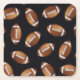 Set von 6 WegwerfUntersetzer des quadratischen Massenbrettes mit einem Bild von Fußball auf Schwarzem. See PlastikUntersetzer- und Papiercocktailserviette zusammenbringend. Sehen Sie die gesamte der Vatertags-Untersetzersammlung im FOOD/BEV | Untersetzerabschnitt.