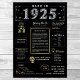 Dieses digitale BACK IN 1925-Poster ist voll von lustigen Fakten, Nachrichten und Highlights von dem, was vor Jahren geschah. Das digitale Poster besticht durch seine Imitate mit goldenen und silbernen Akzenten auf schwarzem Hintergrund, seinen unverwechselbaren Ikonen und seiner mutigen Typografie. Es dient als ein unvergessliches Gesprächsstück bei Geburtstagsfeiern und Jahrestagen, und wenn gerahmt, wird es zu einem nachdenklichen Sake-Geschenk, das jedem Ort eine Touch Nostalgie hinzufügt. Freuen Sie sich auf unser Back in 1925 druckbares Poster, ein unvergessliches Geschenk mit Nostalgie und Individualität. Mit fesselnden Details bietet es eine personalisierte Reise durch die Geschichte und ist somit die ideale Wahl für einen geliebten Geburtstag. Das Foto ist ein ausdruckbares Plakat für das Jahr 1925, das Informationen wie Durchschnittseinkommen pro Jahr, beliebte Namen von Kindern, historische Ereignisse wie die 18. Änderung und der Börsenkrach, Erfindungen der Zeit, Mode-Trends wie Flapper Dress und Cloche Hats, Umgangssprache und Durchschnittskosten von Gegenständen wie einem Pfund Brot und einer Gallone Gas umfasst.