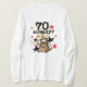 Humorvolle 70. Geburtstag T - Shirts, Geburtstagsknöpfe, Karten, Tassen, Aufkleber und andere 70. Geburtstagskleider- und -geschenkeinzelteile, die eine alberne Katze in einem Partyhut und -text, der, kennzeichnen "70 bereits?" fragt.
