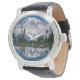 Uhr, Vintage Männeruhr mit schwarzem Lederarmband
