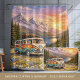 Berg-Sonnenuntergang-Wildblumen Retro-Hippie-Van-L Duschvorhang