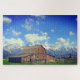 Dieses Rätsel hat eine wunderschöne Bergszene mit einem alten Bauernhof, der darauf abgebildet ist.