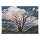 Ein abstraktes walisisches Bergbaum-Design, das Berge und raues Wetter zeigt.