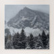 Berg-Puzzle eines schneebedeckten Berges, umgeben von Kiefern.