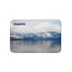 Ein digitales Bild von schneebedeckten Bergen am Ufer des Pend Oreille-Sees am Sandpoint in Idaho an einem späten Wintertag. Es erscheint auch die benutzerdefinierte Textausgabe "IDAHO".
