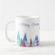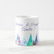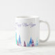 Personalisierte Winterferien Tasse mit kubischen Bergen zeichnend.
