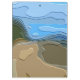 Ein helles, farbenprächtiges abstraktes Design mit Blick auf die Berge, mit blauem Himmel, Felsen und Bäumen.