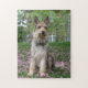 Ein niedlicher Berger Picard-Hund saß in einem Garten.